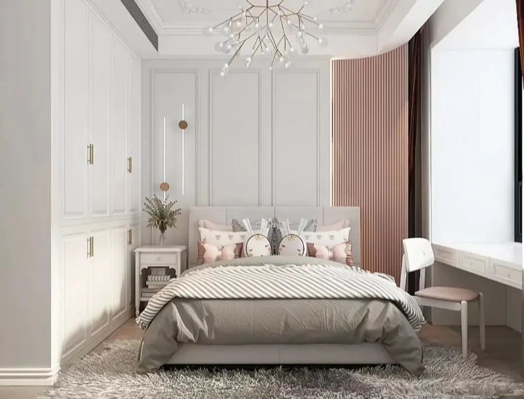 次卧作为女儿房,采用白色和粉色搭配,个性活泼,窗边配给书桌功能,以供孩子日常学习提升