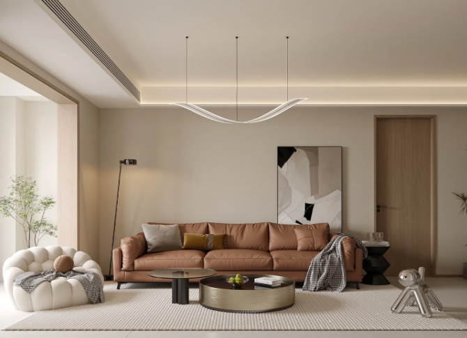 案例风格:现代轻奢 案例面积:160 ㎡ - 客厅背景墙 整体以暖色调为主,营造温馨舒适的家居空间;融入岩板,硬包,格栅等元素作为空间...