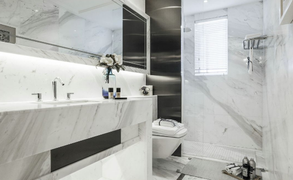 卫生间采用的是干湿分离,减少干区的细菌滋生,大理石瓷砖让空间看上去更明亮大气。