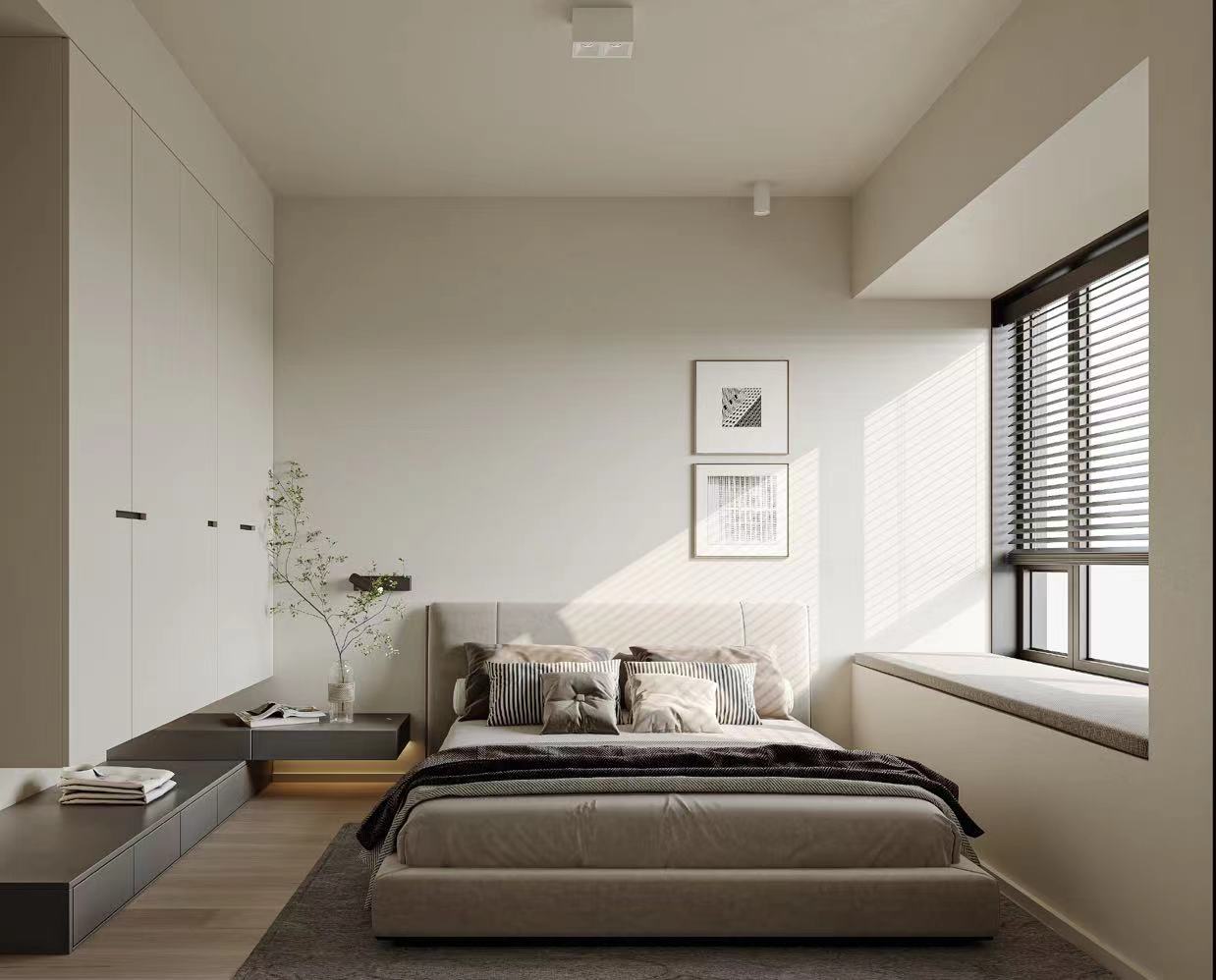 ·次卧悬浮式床头柜与衣柜一体化,兼顾空间收纳还能提升颜值