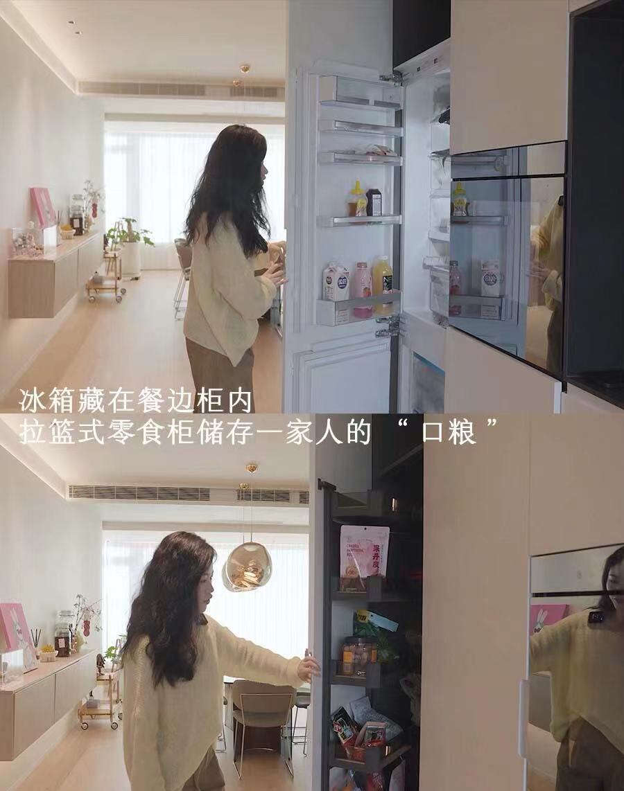 -内嵌烤箱及冰箱空间同时配置零食拉篮,储存一家人的“口粮”。