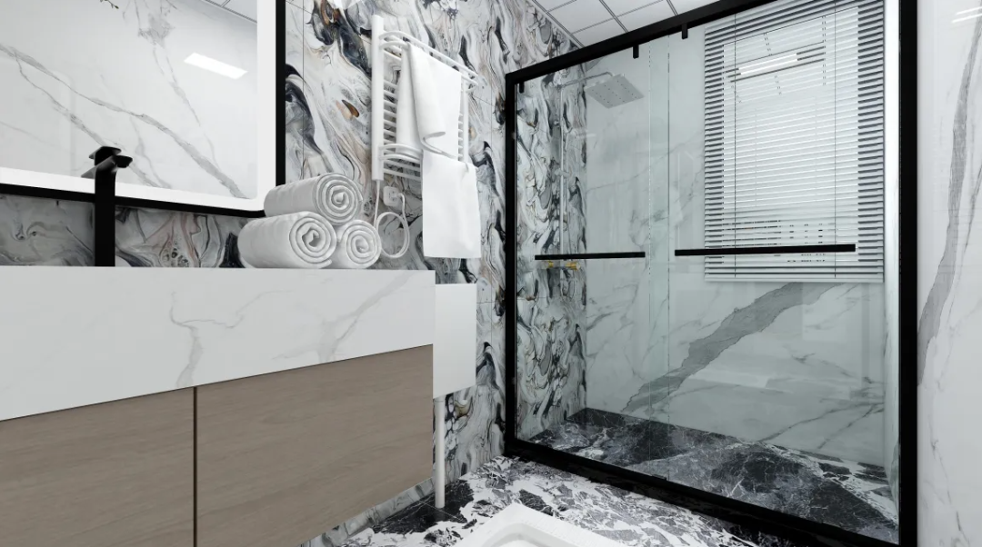 洗手间用玻璃分隔了洗浴空间,干湿分离的设计兼具实用性和美观性。
