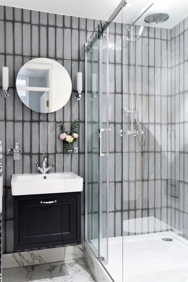浴室是选用了干湿分离的设计,方便的方便实用,墙上的纹理分明的瓷砖让整个浴室很有设计感和空间感。